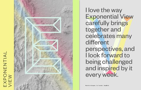 Exponential View is a technology- and AI-focused newsletter from Azeem Azhar. As well as creating a new visual identity, the project involved creating a website bringing together Azeem's various other activities, including a podcast for Harvard Business Review. The website pulled in the most recent articles and episodes, as well as profiling the team.